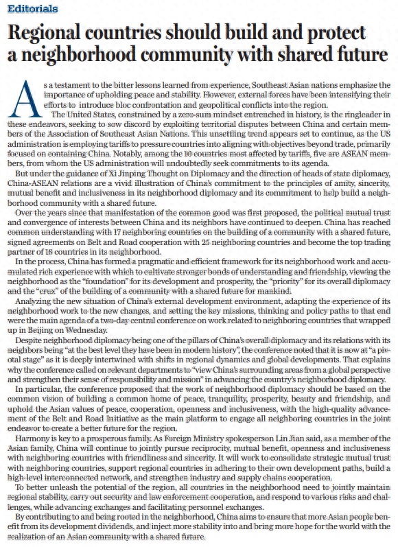 原文标题:Regional countries should build and protect a neighborhood community with shared future